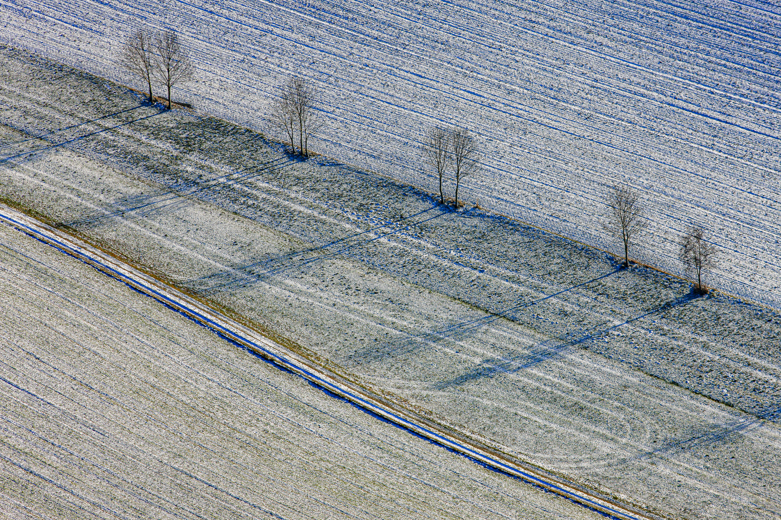 Aerial view of a row of trees at the edge of a field in Vatersdorf, Landshut, Lower Bavaria