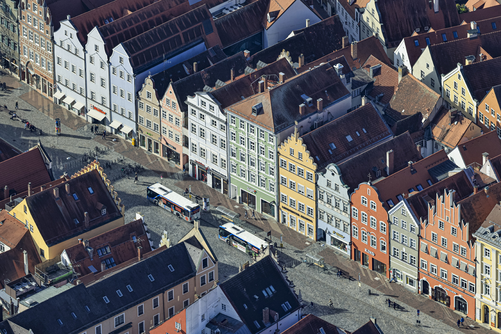 Luftbild von der Altstadt in Landshut, Niederbayern