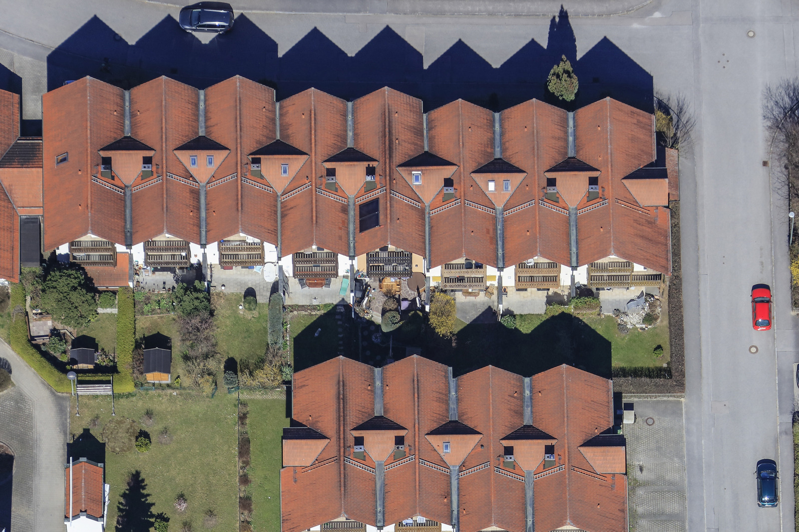 Luftaufnahme von einer Reihenhaussiedlung in Vilsbiburg