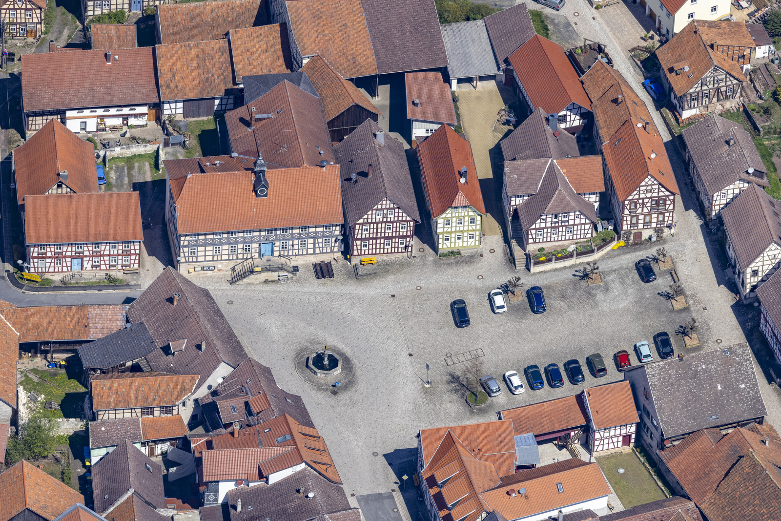 Luftbild vom Marktplatz in Ummerstadt, der zweitkleinsten Stadt in Deutschland mit 463 Einwohnern (Stand 31.12.2019), Hildburghausen, Thüringen