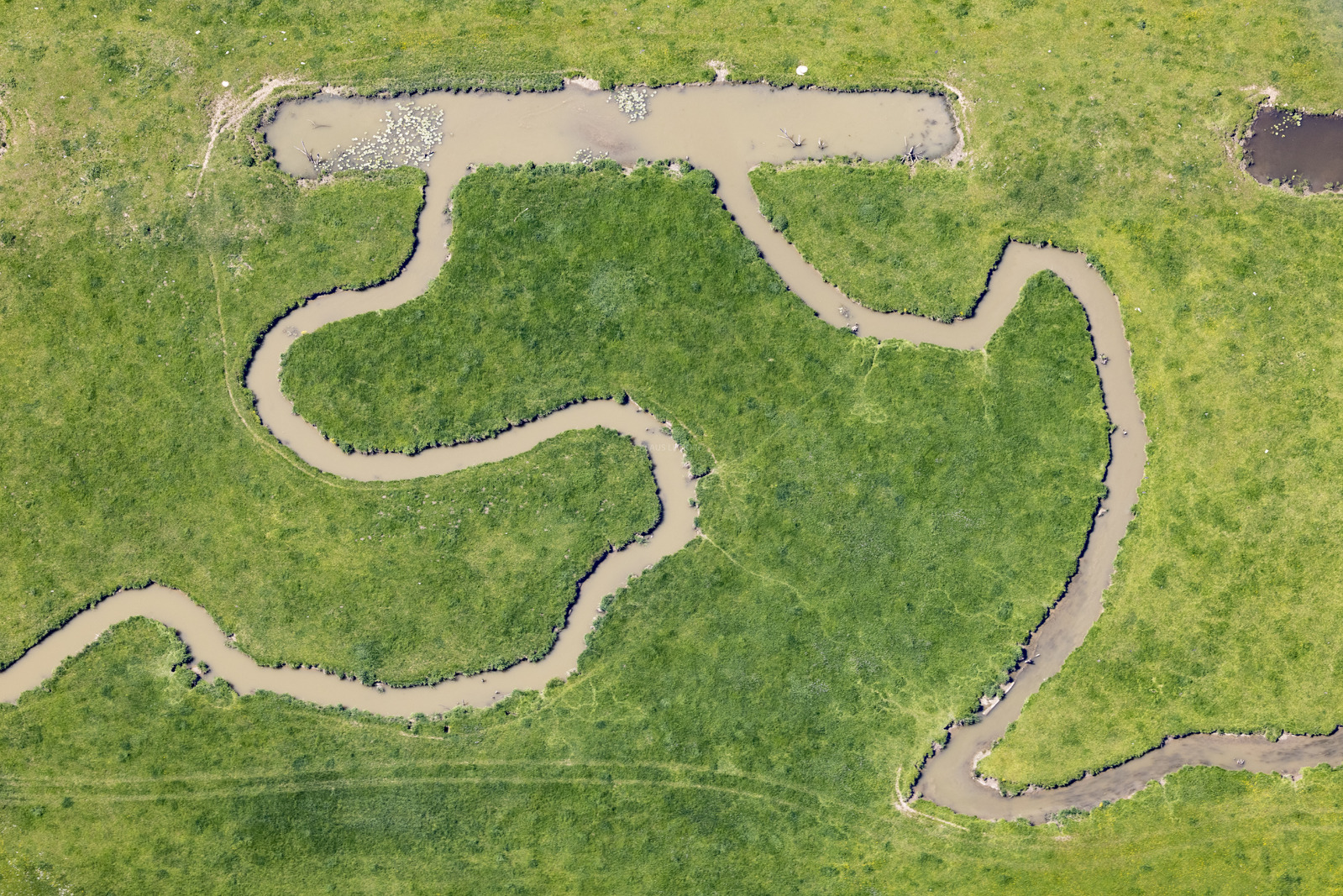 Luftbild von der Renaturierung der Schneidheimer Sechta, Kirchheim am Ries, Ostalbkreis, Baden-Württemberg