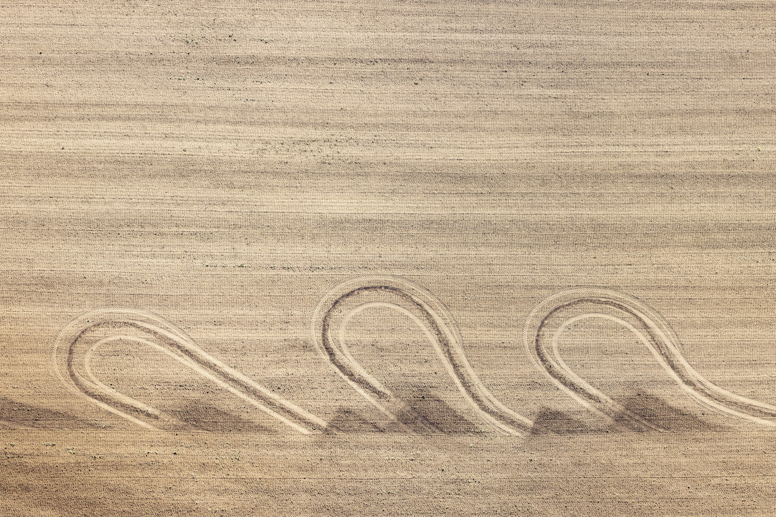 Spuren in Bögen auf dem Acker