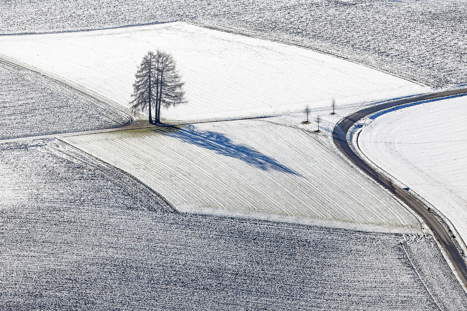 Luftbild von Zwei mal drei Bäumen in Lengdorf, Erding, Oberbayern